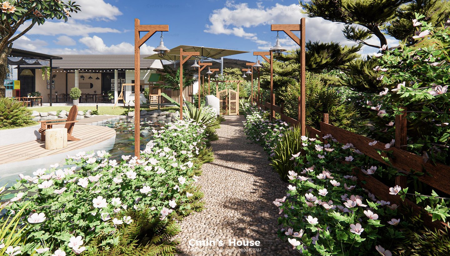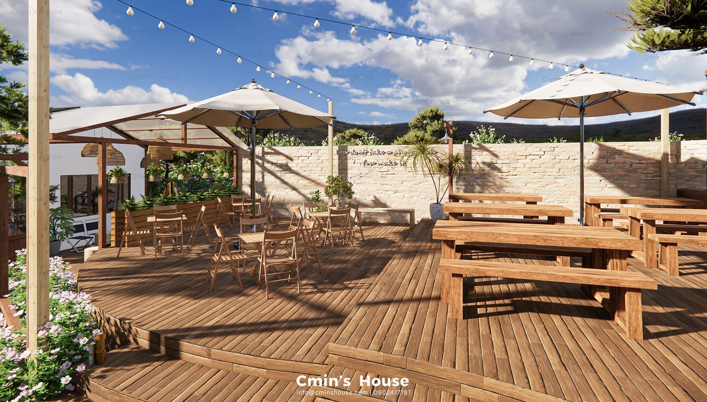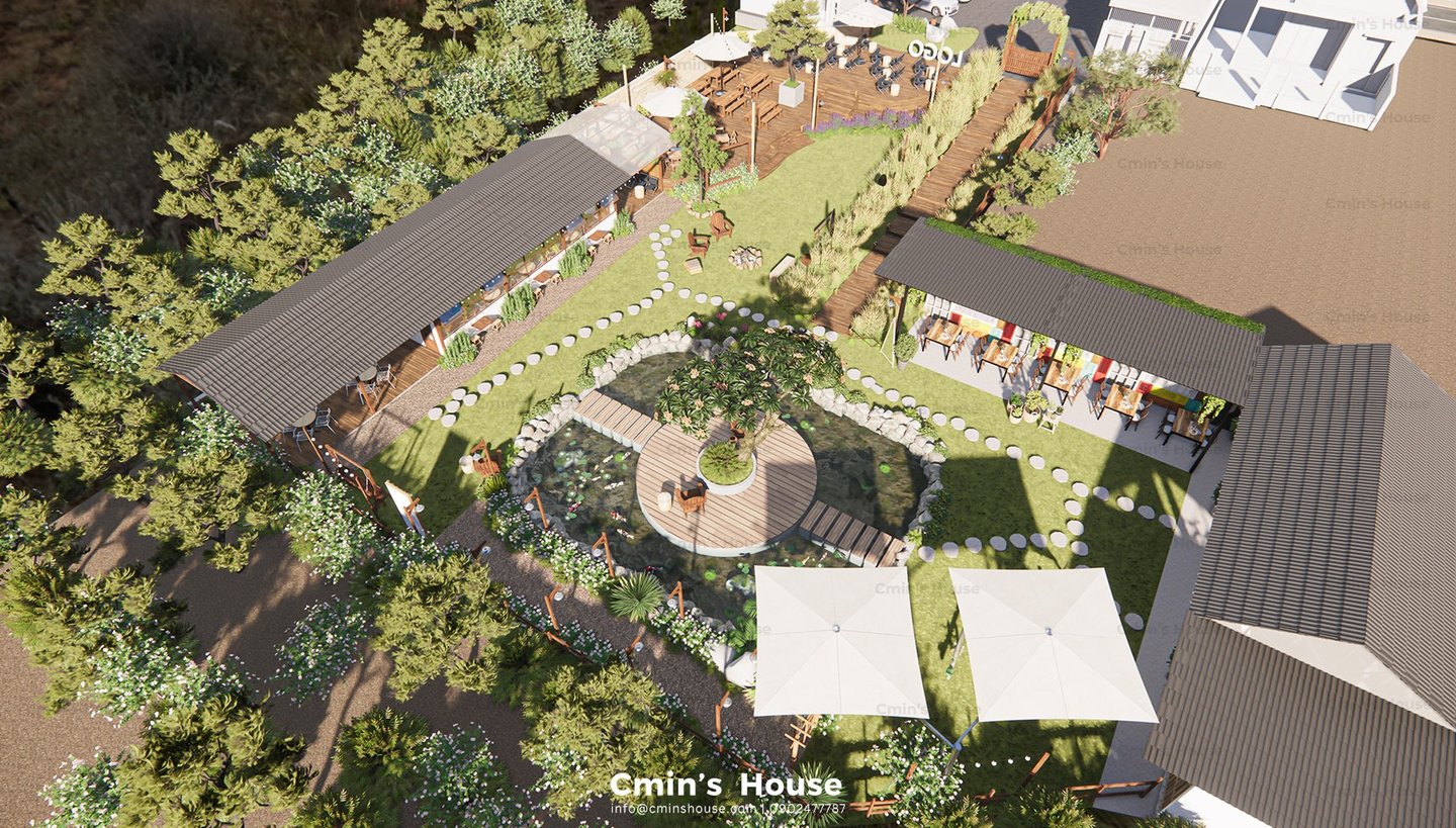 Lấy cảm hứng từ vật liệu tự nhiên như gỗ, đá bản địa, Binzz Coffee mang đến cho du khách cảm giác như lạc bước vào một khu dã ngoại xinh đẹp với những tán cây rợp bóng mát, hồ nước trong veo và khu vực đốt lửa trại ấm áp.