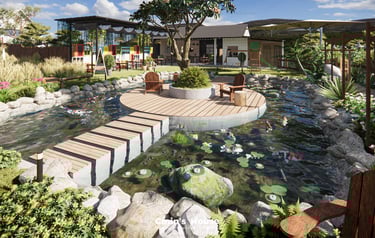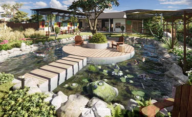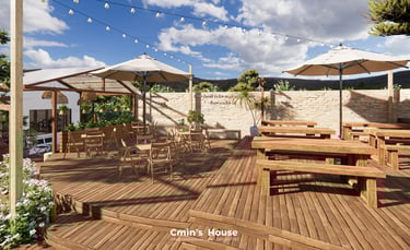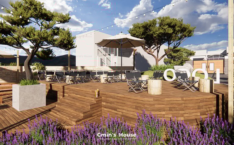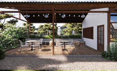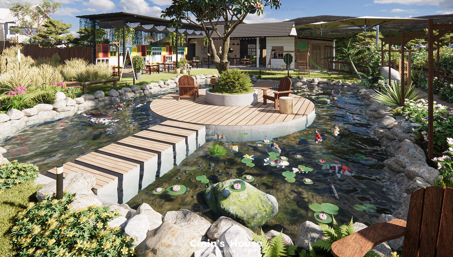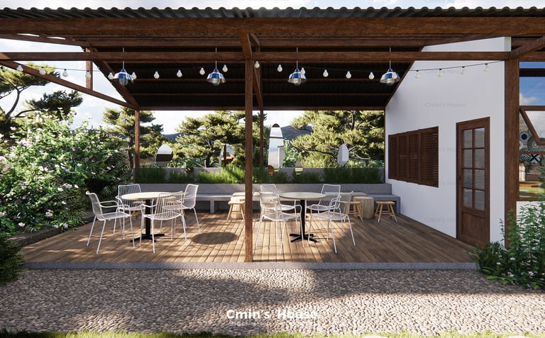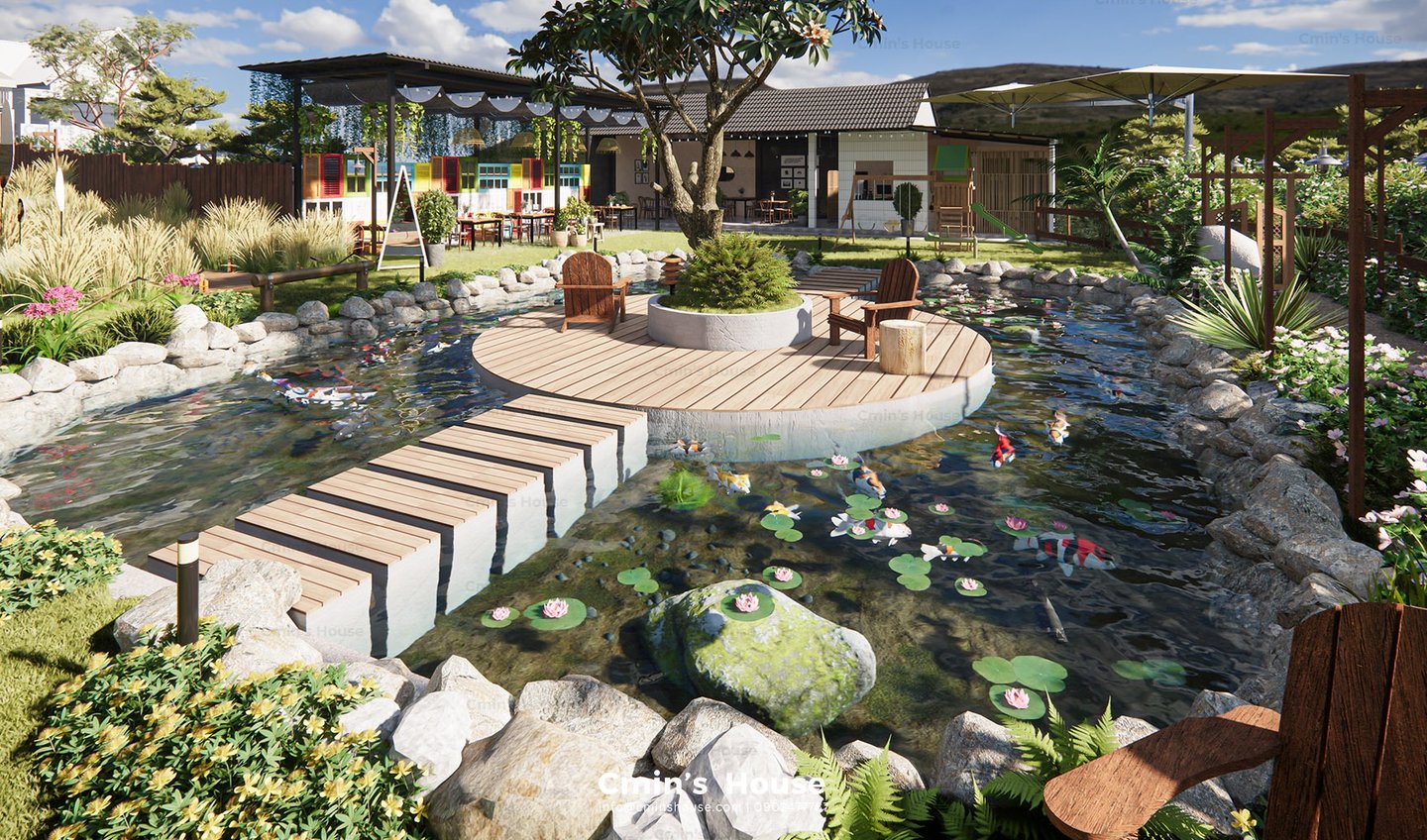 Lấy cảm hứng từ vật liệu tự nhiên như gỗ, đá bản địa, Binzz Coffee mang đến cho du khách cảm giác như lạc bước vào một khu dã ngoại xinh đẹp với những tán cây rợp bóng mát, hồ nước trong veo và khu vực đốt lửa trại ấm áp.