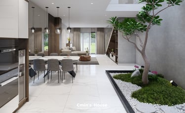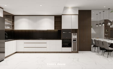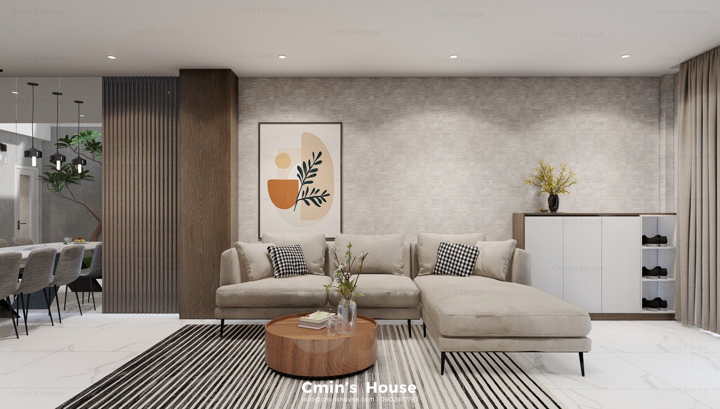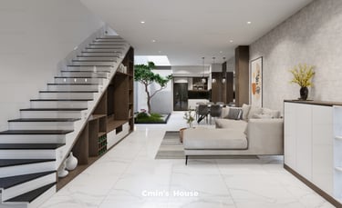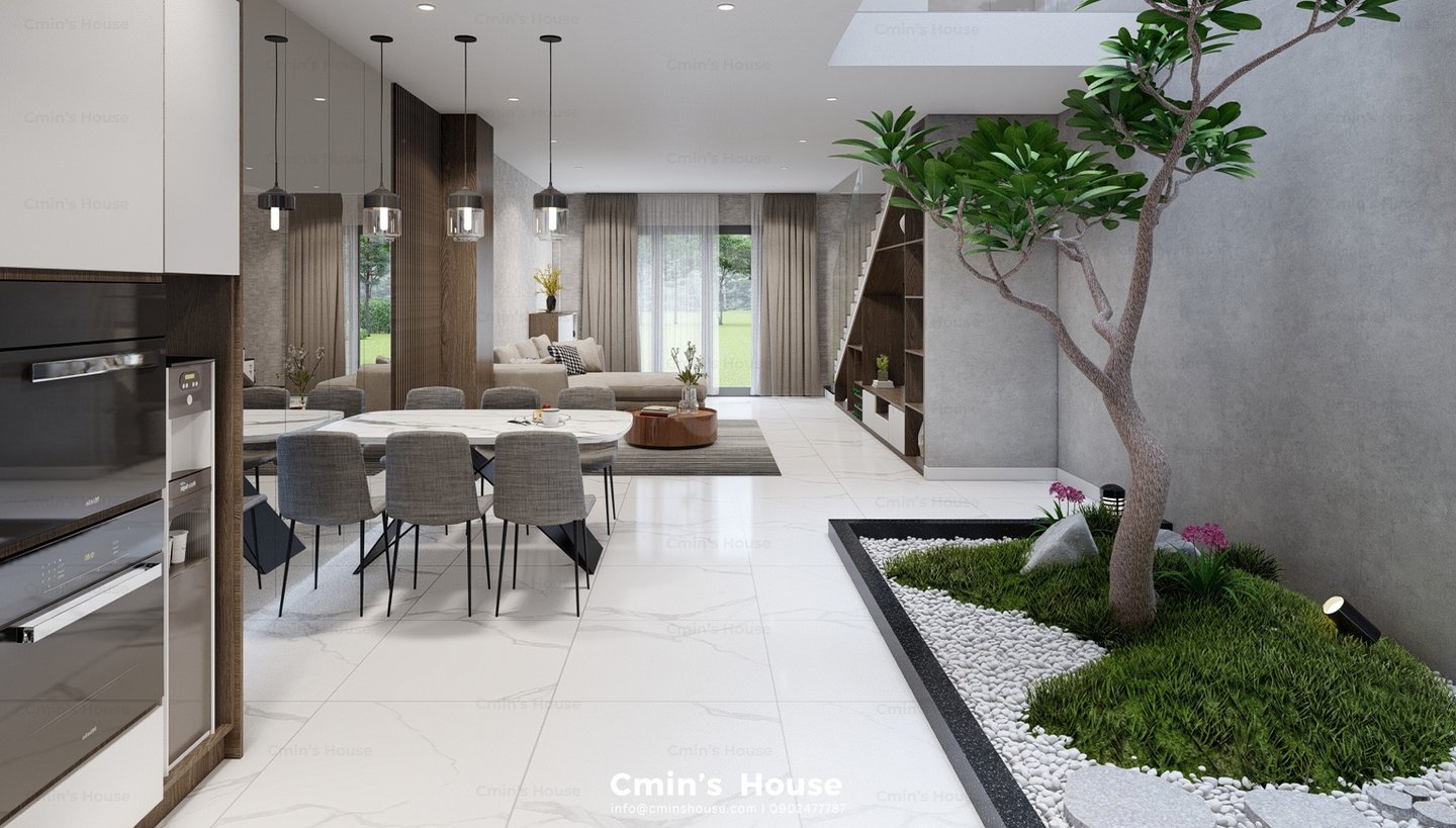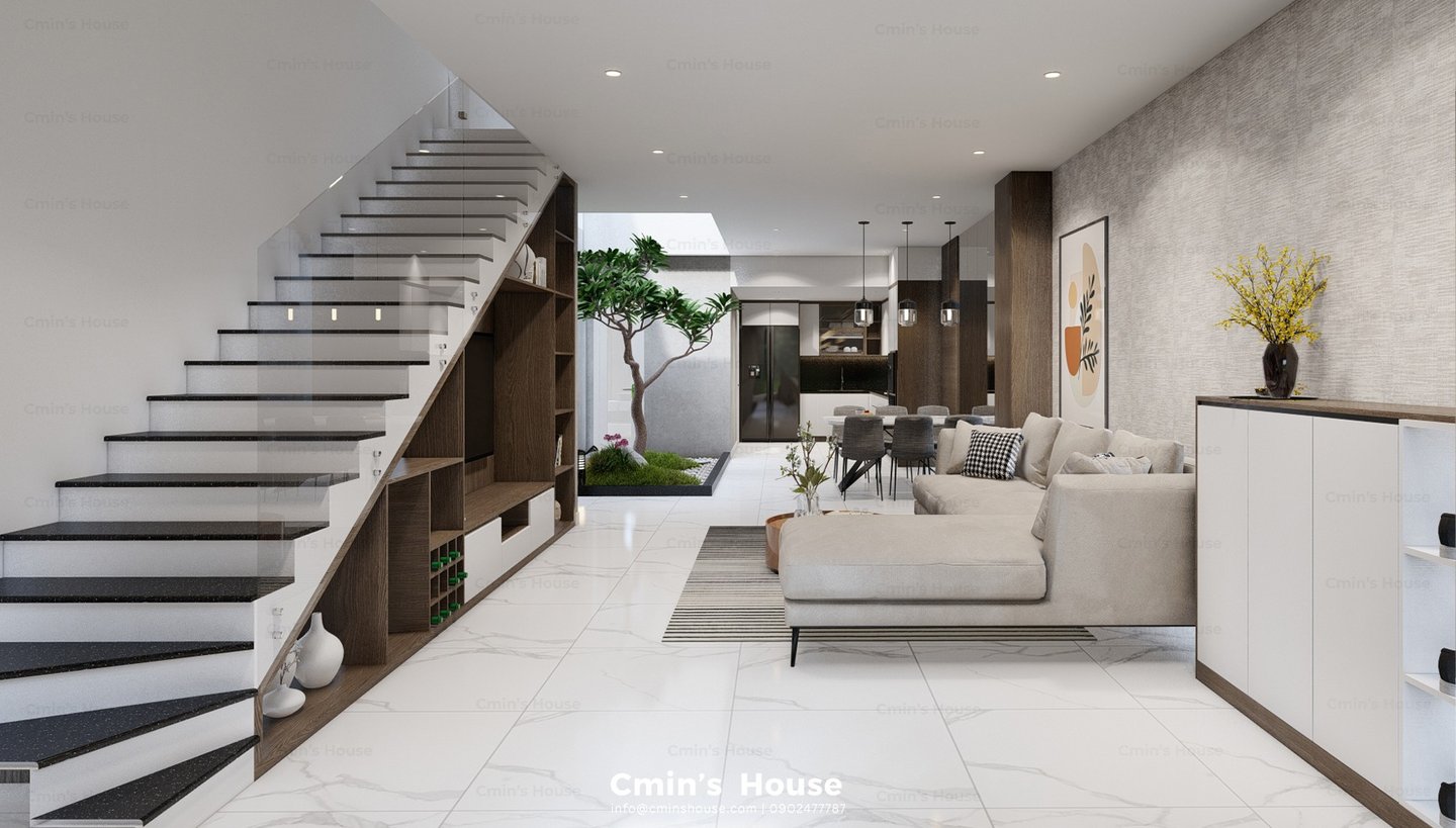 Châu House mang phong cách hiện đại tối giản, tiết kiệm chi phí nhưng vẫn đảm bảo tính thẩm mỹ cao và đầy đủ tiện nghi. Phòng khách và bếp được thiết kế tích hợp, tạo điều kiện cho các thành viên trong gia đình có thêm nhiều cơ hội sinh hoạt chung, đồng thời mang đến một không gian sống tràn đầy năng lượng.