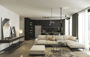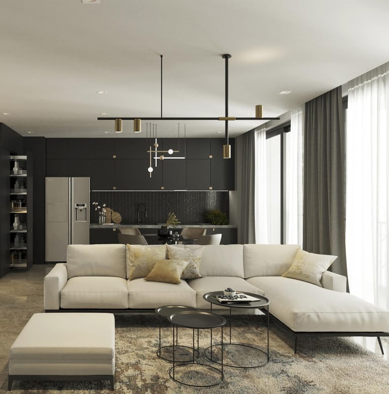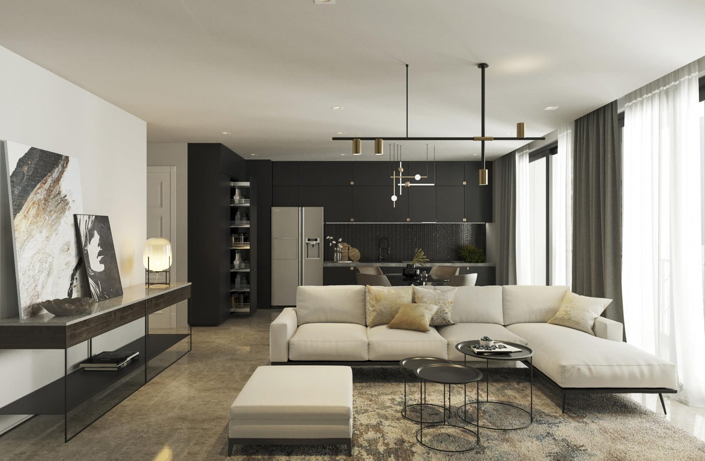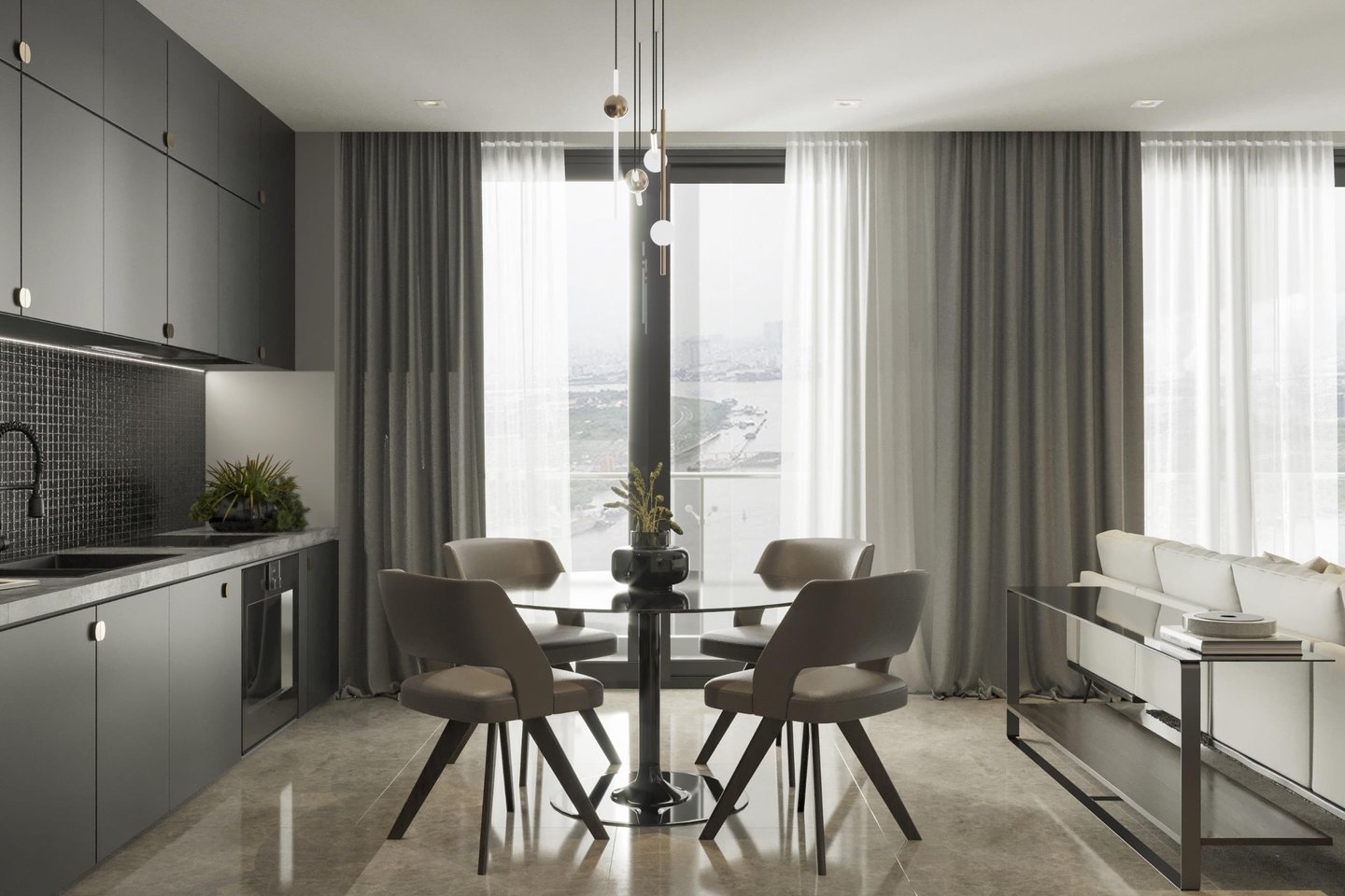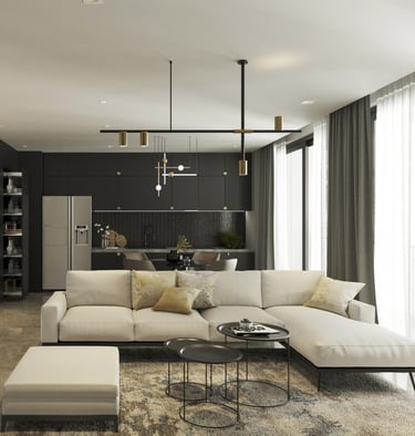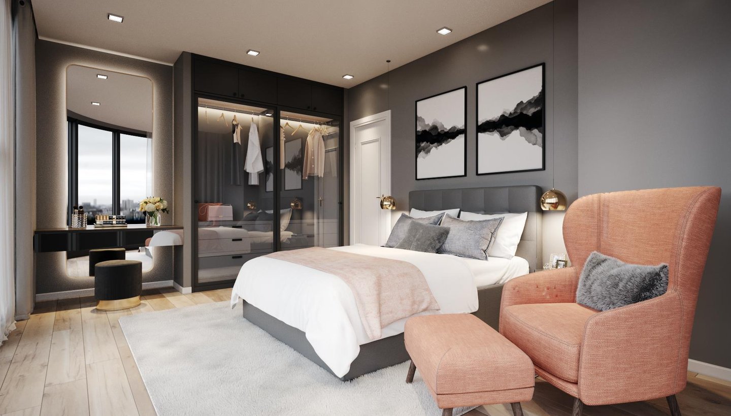 Là một căn hộ ba phòng ngủ thuộc dự án Vinhomes Bason, căn hộ là sự giao thoa giữa tone màu ghi – đen trung tính, cách pha màu đối lập đầy táo bạo giúp không gian trở nên rộng hơn, chất hơn.