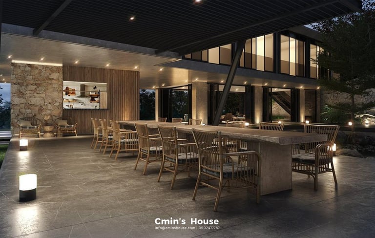Đúng với và tên gọi “nghỉ dưỡng”, biệt thự được thiết kế nhằm hưởng thụ cuộc sống, là nơi nghỉ ngơi của các thành viên trong gia đình sau những ngày bận rộn mệt mỏi hay tổ chức những buổi tiệc họp mặt với bạn bè. Kiến trúc biệt thự được xây dựng với không gian mở với view nhìn toàn cảnh nhằm tạo nên khu vực nghỉ ngơi giao hòa, gần gũi thiên nhiên.