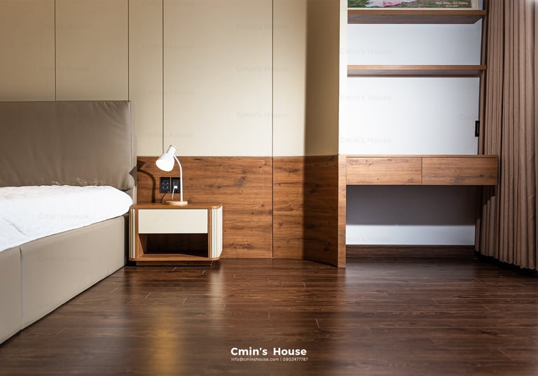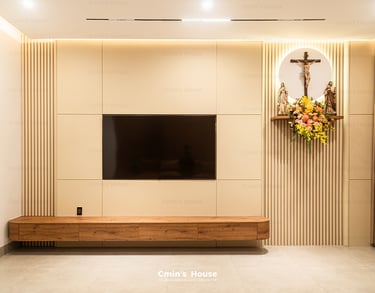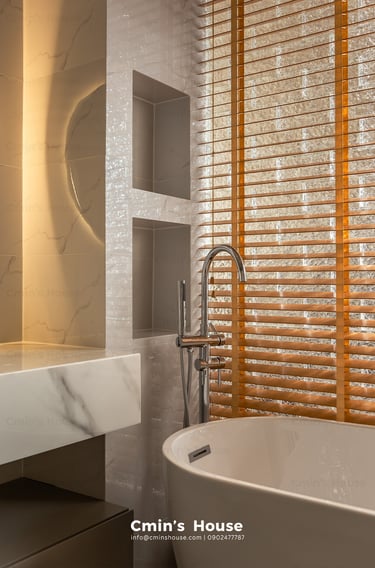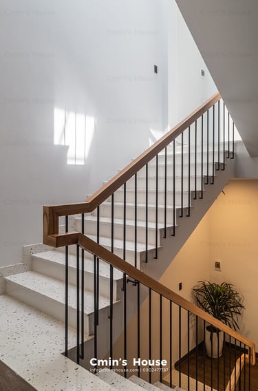 Phương House mang vẻ thu hút bởi với sự kết hợp giữa chất liệu đá và gỗ, được đội ngũ Cmin's House chú trọng vào kỹ thuật hoàn thiện chất lượng cao để tạo nên không gian sống tinh tế.