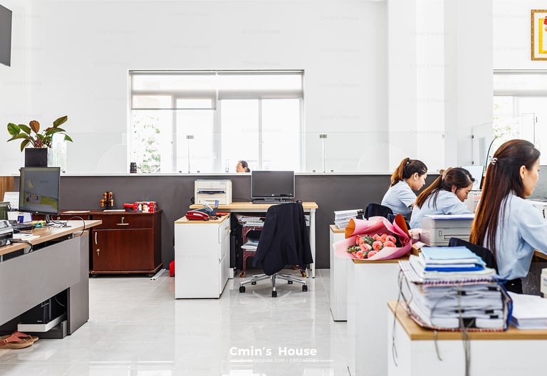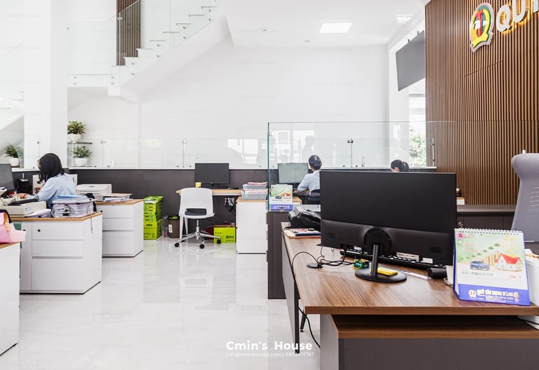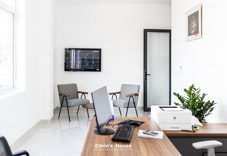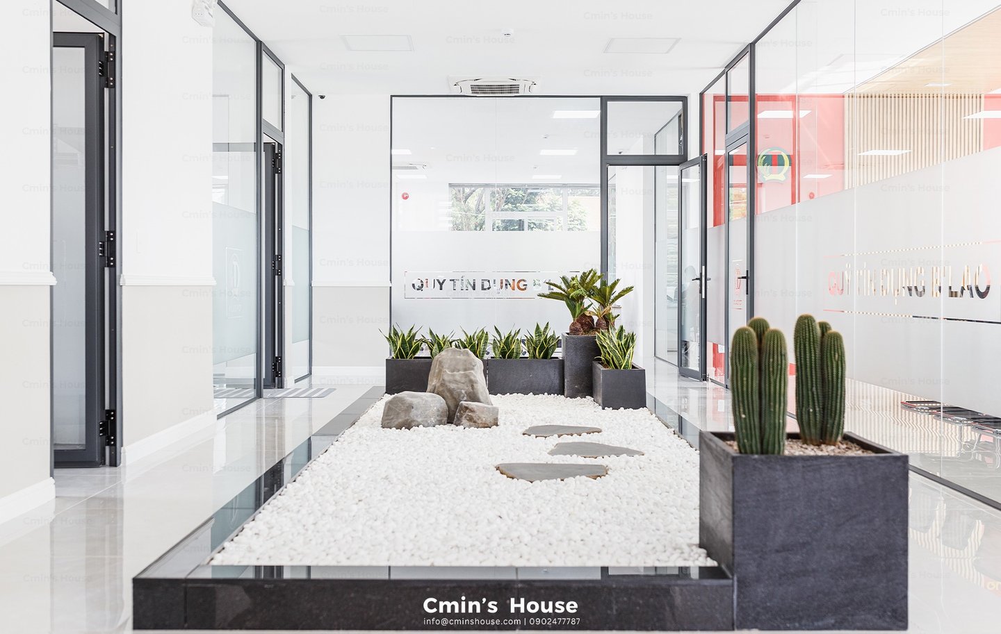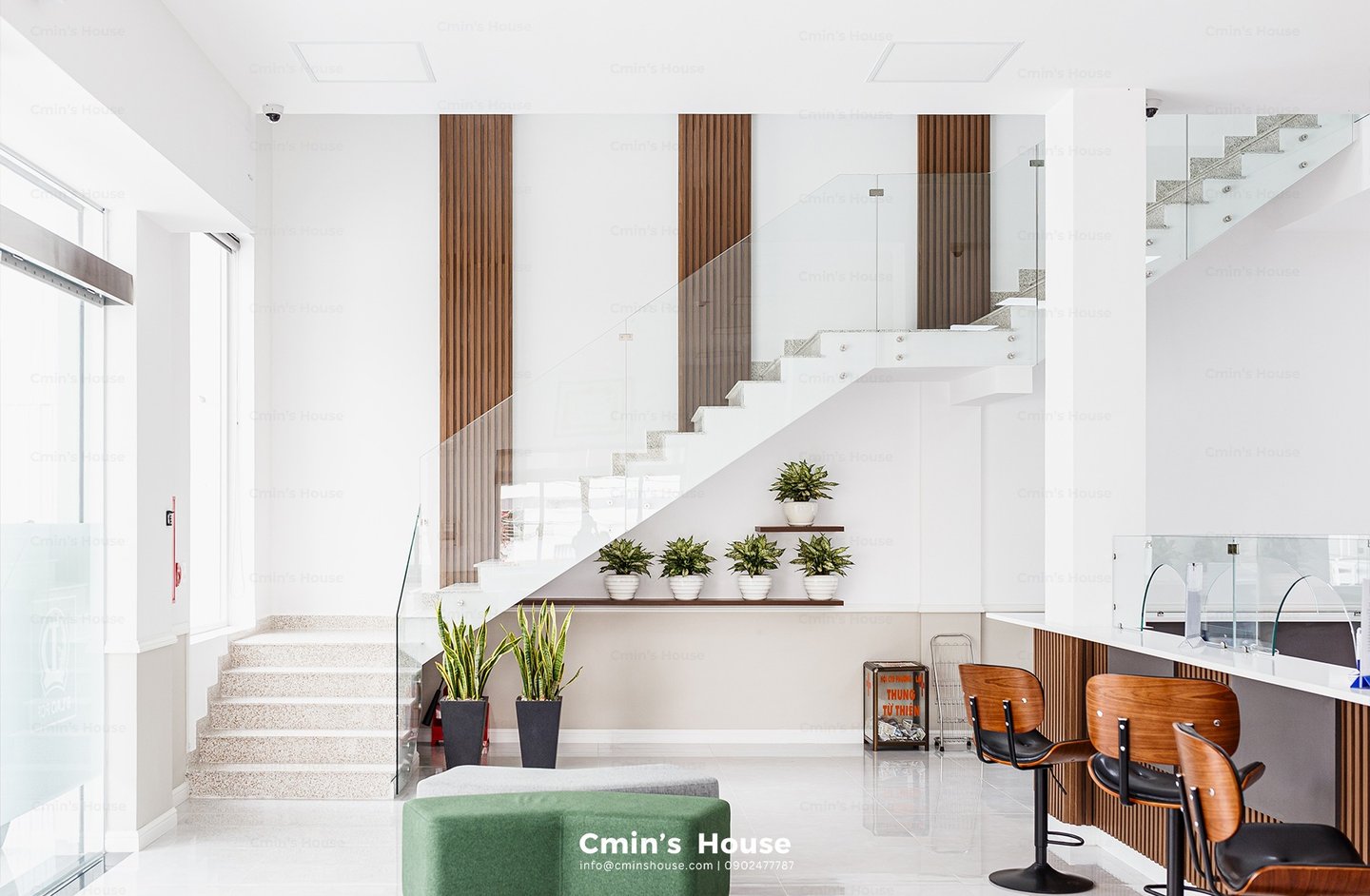 Một dự án thi công nội thất của Cmin's House tại Bảo Lộc xanh mát. Nội thất văn phòng hiện đại không chỉ giúp gắn kết giữa các nhân viên mà còn thể hiện được tính cách cá nhân của văn hóa doanh nghiệp. Ánh sáng bố trí hài hòa với các yếu tố tự nhiên như màu sắc của gỗ và cây xanh tạo nên không gian dễ chịu.