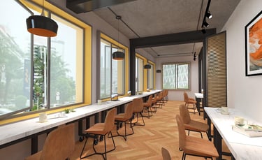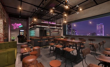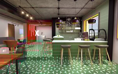 Mẫu thiết kế X Office là hiện thân của triết lý work hard-play hard, nơi mà các thành viên dành hơn 8 tiếng mỗi ngày để gắn bó và cống hiến. Không gian làm việc này được tích hợp linh hoạt, từ quán cà phê mang đậm chất xưa và nay với nền gạch mosaic xanh và trần bê tông, tạo cảm giác mộc mạc, gần gũi, đến khu vực phòng đọc sách với những chiếc ghế lười giúp thư giãn và kích thích sự sáng tạo. Phòng họp và phòng thuyết trình được thiết kế thân thiện với vách kính dán mờ, mang lại cảm giác thông thoáng và cởi mở cho không gian. Sau những giờ làm việc căng thẳng, Skybar là điểm đến lý tưởng để các thành viên gặp gỡ, trò chuyện và cùng nhau thưởng thức những ly rượu vang ngọt ngào, để lại những ấn tượng khó quên."