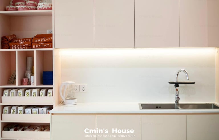 “Chiếc bánh” Yến Villa được thành hình trọn vẹn khi gia chủ thể hiện cá tính của mình ngay tại khu vực phòng bánh Brisati. Những mảng màu đỏ gạch năng động, nhảy múa trong không gian mang cảm hứng color block, phục vụ giây phút “hảo ngọt” của gia đình và những người thân yêu.